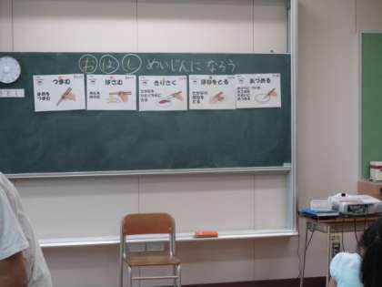 今日はおはし名人「魚を骨をとる」練習です。とちのみさんが、4時間目におはしの持ち方の練習をしていました。