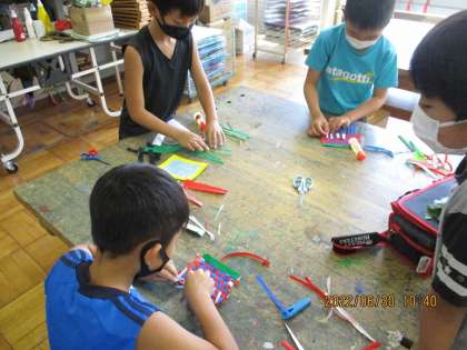 3年生「織物の仕組み」って? 公開日 2022/07/01 更新日 2022/07/01 今日の出来事 2週間前ですが、3年生は社会科見学で織物工場に行きました。 細い糸がどうやったら織物になるのか、簡単な工作で仕組みを理解していきました。 「なるほど〜、わかった!つくってみる!」と張り切った3年生。 その様子を紹介します。 授業