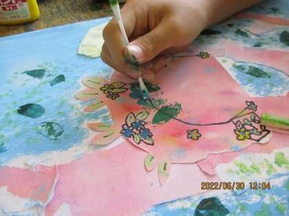 4年生のみんなも一緒になって、自分だけの大きな木を想像して絵に表しました。