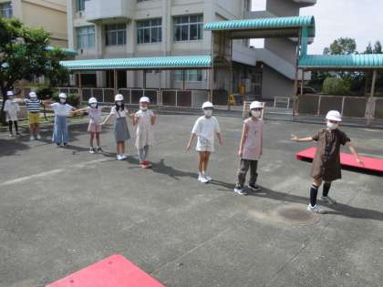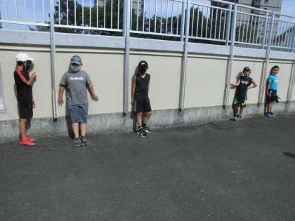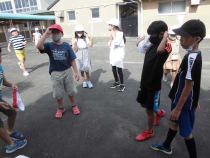 影つなぎと影ふみをしました。やっていく中で、「ここに立てば影が見えなくなるからタッチされない」「前を向いても後ろを向いても影はプール側にある」等、たくさん気が付いていました。また、「地球はまわっているから冬になればそよ風門側に影ができるんじゃないかな」「ここ(日陰)が涼しいのは、木の下だからだ」など、様々なことを考えていました。