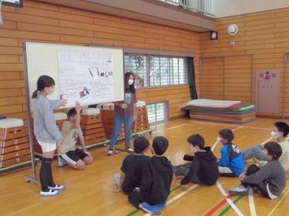 今日は、6年生たちから5年生へ日光についての発表を行いました。