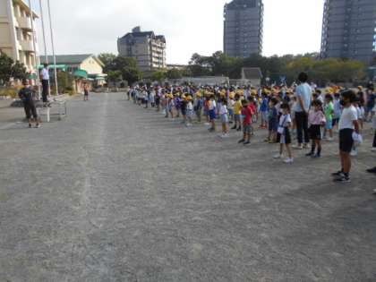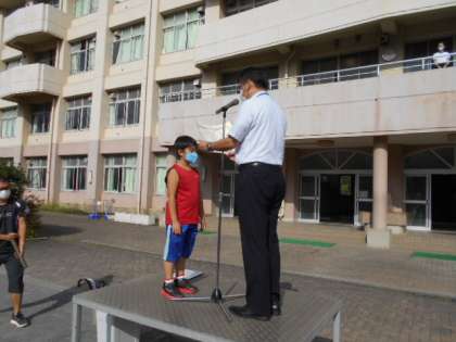 全校朝会 公開日 2022/09/27 更新日 2022/09/27 今日の出来事 暑さも和らいだので、2学期、初めて校庭で全校朝会を行いました。朝会の後に、2件表彰がありました。生活指導の話もありちょっとオーバーしましたが、子供たちはしっかりと話を聞くことができました。 校長より 授業 研究・研修 生活 行事 給食