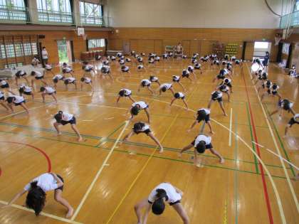 5年生たちは、これまでの高学年を見てきたから何となくは知っているけど、ちゃんと振りを教えてもらったら、「なにこれ、めちゃくちゃきつい!!!」