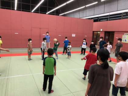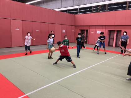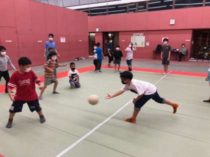 4種目目は、「アメリカンドッジボール」です。ボールを当てられた人は、相手チームに入らなければなりません。