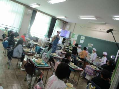 今日は3年生と5年生にテレビ局の取材が入りました。