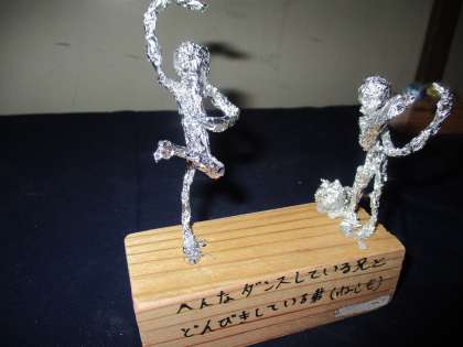 5年生図工「長細人間 ジャコメッティさん」 公開日 2022/12/05 更新日 2022/12/05 今日の出来事 今日の図工は、様々なポーズをとる人をアルミホイルでつくりました。 ジャコメッティとは、長細い人の彫刻で有名なピカソと同時代に活躍した彫刻家です。 愛宕小の芸術家たちの作品を少しだけ紹介します。 写真1 「へんなダンスをしている兄と どんびきしている弟」 写真2 「一生続くじゃんけん」 写真3 「考えている人と相談にのる人」 5年 専科 授業