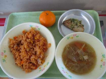 12月20日の給食 公開日 2022/12/21 更新日 2022/12/21 給食室から 今日の献立は、大豆ピラフ、あじの香草パン粉焼き、キャベツとベーコンのスープ、みかん、牛乳でした。 あじはグリルで焼くことが多いかもしれませんが、パン粉にオリーブオイル、にんにく、塩、こしょうを混ぜたものをかけて焼いてもおいしいです。