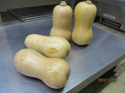 バターナッツかぼちゃです。ひょうたんのような形をしていますね。