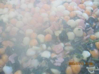 今日から3学期の給食が始まります。今日はお正月メニューということで、紅白の白玉を入れたお雑煮を作りました。赤い色はにんじんでつけています。梅の花のかまぼこと合わせて彩りきれいなお雑煮でした。今学期もどうぞよろしくお願いいたします。