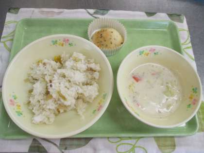 1月20日の給食 公開日 2023/01/20 更新日 2023/01/20 給食室から 今日の献立は、コーンライス、クリームスープ、八王子産米粉の黒ごまケーキ、牛乳でした。 今日は八王子産の米粉を使ったカップケーキを焼きました。しっとりサクサクしてごまがアクセントになっていました。