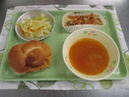 3月13日の給食 公開日 2023/03/13 更新日 2023/03/13 給食室から 今日の献立は、ミルクパン、ポテトグラタン、ミネストローネスープ、コーンサラダ、りんごジュースでした。 グラタンは子ども達の人気メニューです。グラタンはこってりしているのでミネストローネスープはさっぱり系の味付けにしてみました。