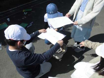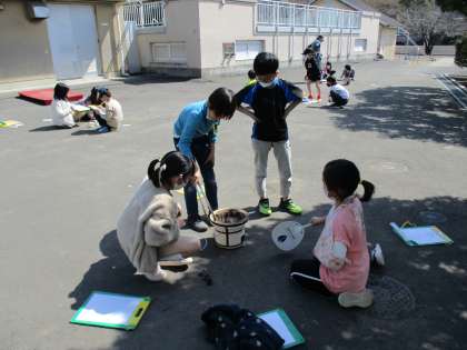説明をよく聞き、安全に気を付けて落ち着いてできました。「火をつけるのがすごく大変で時間もかかって、昔の人は大変だったんだなと思った」「熱いとは分かっていたけれど、こんなに熱くなるんだなとびっくりした」など話しており、体験を通してたくさんのことを感じて学ぶことができたようです。