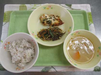 6月9日の給食 公開日 2023/06/09 更新日 2023/06/09 給食室から 今日の献立は、梅ちりごはん、赤魚の薬味やき、かわりきんぴら、具だくさんみそ汁、牛乳でした。 昨日から関東地方も梅雨入りしました。ちょうどこの時期に梅の実が熟すので、梅という字を使うそうです。今日は入梅にちなみ、梅とちりめんじゃこ、ごまを入れたごはんを作りました。