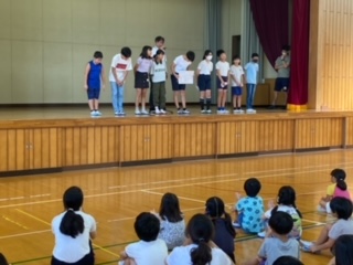 9/11_集会 公開日 2023/09/11 更新日 2023/09/11 今日の出来事 今朝は集会です。 校長先生からは、感染症についてのお話しがありました。 Tシャツコンテストやスポーツ、鬼ごっこの表彰や30周年の横断幕の発表もありました。 校長より 授業 研究・研修 生活 行事 給食