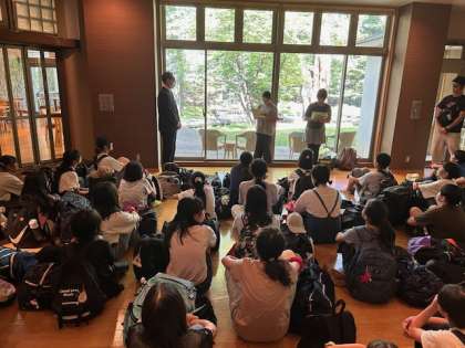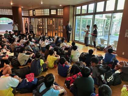 東照宮の見学後、いろは坂や中禅寺湖などを抜け、宿泊地「森のホテル」に到着し、開校式を行いました。