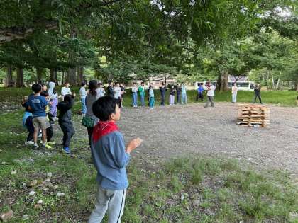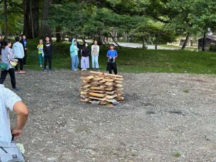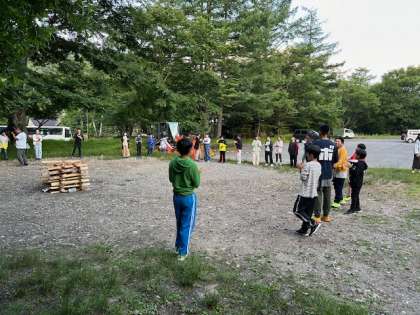 キャンプファイヤーにはまだ明るいので、点火前に皆で歌いました。
