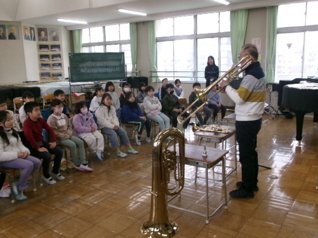 先日6年生の音楽のゲストティーチャーをしてくださった岩島さんが、今日は3年生の音...