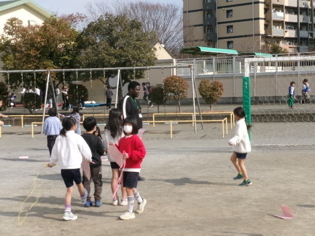 ALTのマージッド先生も外に来て縄跳び週間の取組を見てくださいました。
