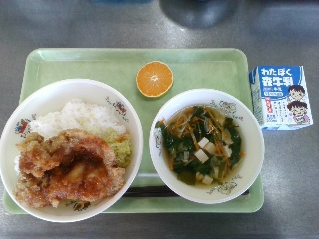 給食では牛肉ではなく豚肉で活を作っていただきました。