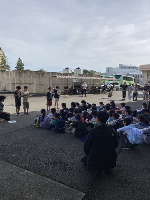 爽やかな秋晴れのもと、宿泊学習の出発式を行いました。たくさんの保護者のみなさんのお見送りのなか、子どもたちは宿泊学習に向けた決意を再認識することができました。サプライズで他学級の子どもたちの見送りもあるなど、素敵なスタートを切ることができました。