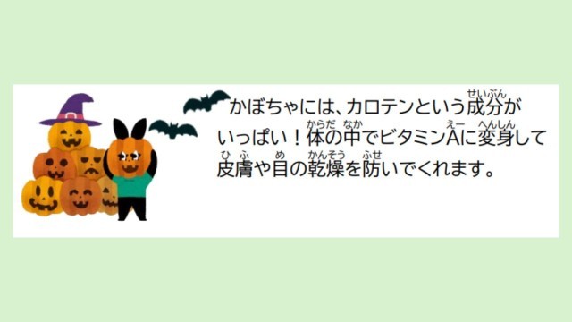 おまけにはかぼちゃの皮を使ってジャック・オー・ランタンをイメージした顔を調理員さんが作ってくれました。