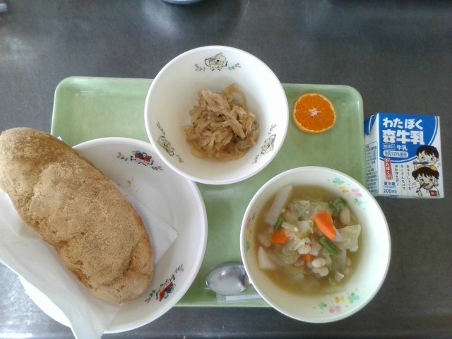 給食で大人気の「きなこ揚げパン」の登場です。朝から「楽しみだな〜」と声が聞こえていました。