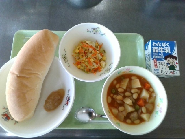 給食で、国産小麦を使用したコッペパンをいただきました。