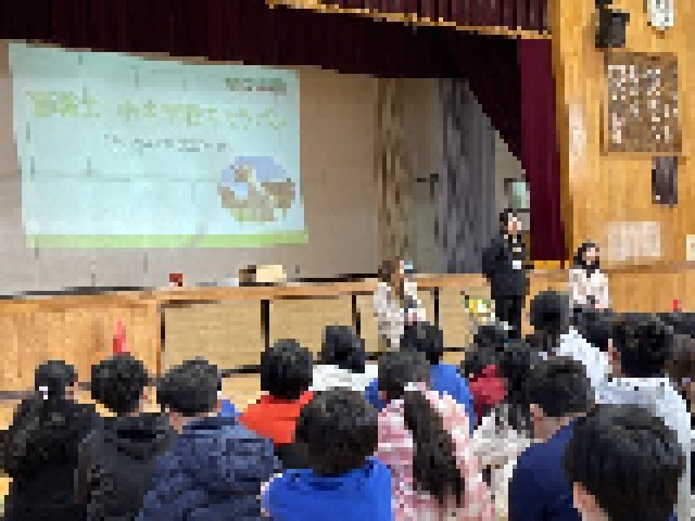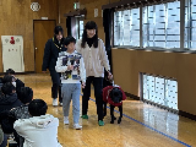 本日、盲導犬小学校キャラバンがありました。様々な見え方や盲導犬について学び、子どもたちは真剣に聞き入っていました。
