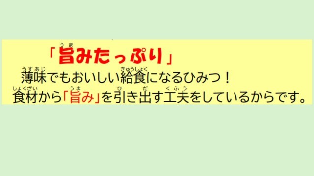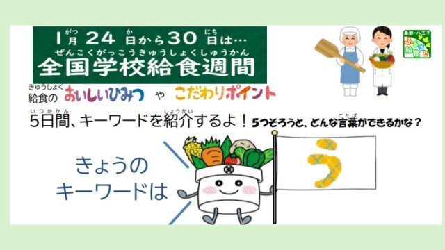 全国学校給食週間3日めです。今日のキーワードはうまみたっぷりの「う」です。