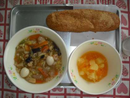 きなこあげパン / 八宝菜 / フルーツポンチ / 牛乳