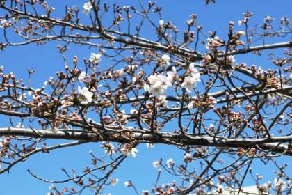 正門の近くの桜は、遠くから見ても咲いているのが分かりますが、他の桜はこれからというところです。