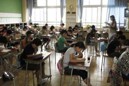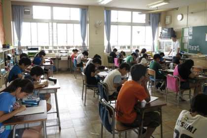 5年生は朝から、東京都の学力向上を図るための調査に取り組んでいます。写真は、意識調査を行っているところです。