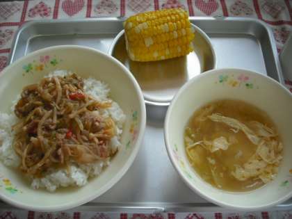 冬瓜と卵のスープ/ふかしとうもろこし/牛乳