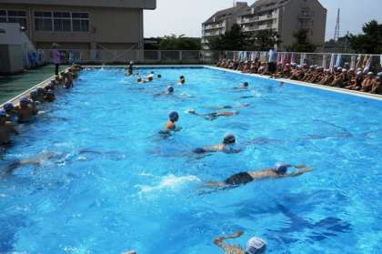 5・6年生の水泳指導がありました。今日は、平泳ぎの練習をしてから、泳力別に練習しました。