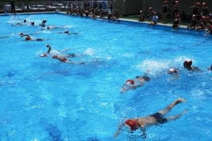 クロールの練習をした後で、泳力別の練習をしました。
