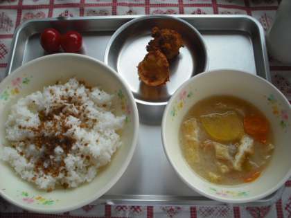 ごはん/アーモンドふりかけ/豆腐のまさご揚げ