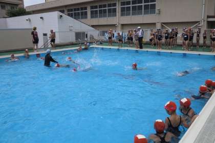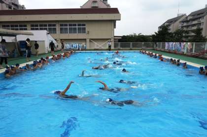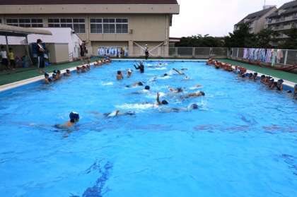 3・4年生がプールに入りました。今日は、クロールを中心に練習しました。前回の練習でだいぶ泳げるようになってきたようです。