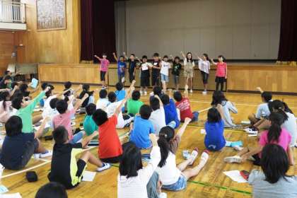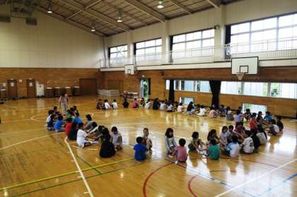 5年生の移動教室が近づいてきました。今日は、体育館で係ごとにメッセージを発表しました。