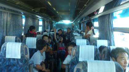 道路状況により、八王子インターから中央道に入りました。車内では、バスレクが始まっています。