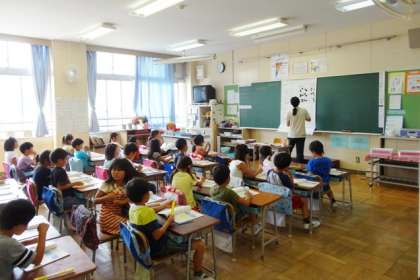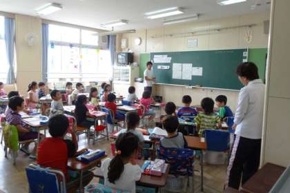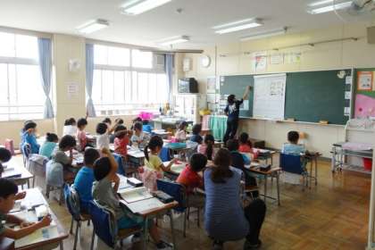 1年生が算数でひき算の学習をしています。3クラスとも、図をもとにひき算の意味を理解しています。