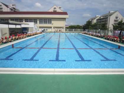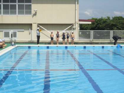 プール開きでは代表の児童がそれぞれ自分の目標を発表しました。