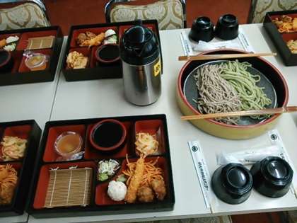桐生織物センターでの昼食。そばとうどんの食べ放題!!