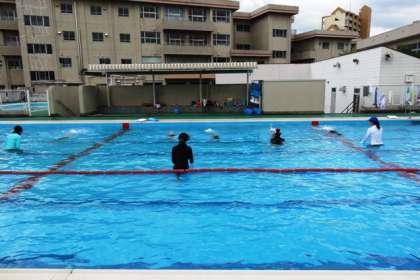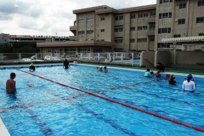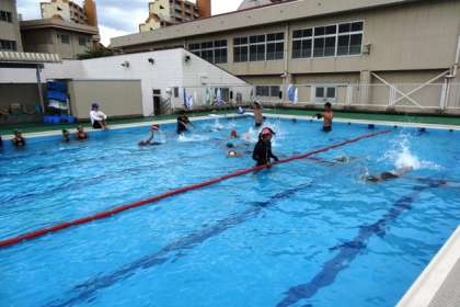 夏休みのプール特訓の最終日となりました。3・4年生の目標は、泳げるようになること。今日もほぼ一対一に近い形で個別指導をしました。