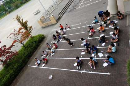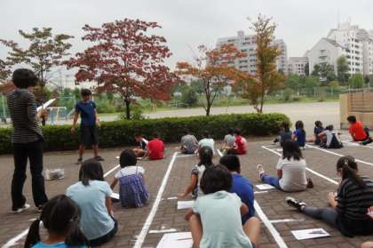 4年生が理科で月の動きについて学習しています。今日は、方位磁針を片手に月の観察の仕方を学習しました。子供たちは楽しく理科の学習をしています。