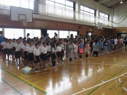 朝の音楽集会では「ふるさと」を全校で合唱しました。