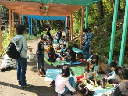 とても景色のいいところでお昼です。みんなお腹を空かせていました。