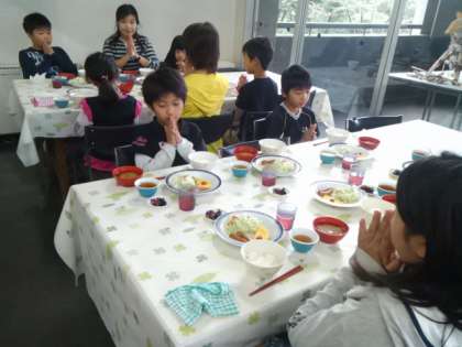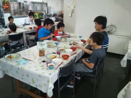 食事係の人が準備をしてくれました。みんなで、いただきます。