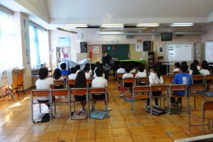 3年生が音楽で、「メヌエット」の旋律の特徴を感じ取りました。音の高さやリズムに注目しながら、鑑賞することができました。