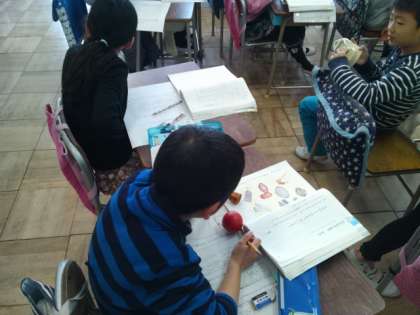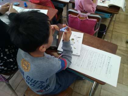 「もののしくみを説明しよう」という学習に取り組んでいます。一人一人がお家から一つものを持ってきていました。上手く説明が出来るように、原稿を書く作業を進めています。