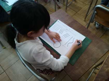 「カッターの使い方」の学習をしました。直線や丸、三角など、色々な形を切る練習をしました。安全に、上手に使えるように慎重に取り組みました。